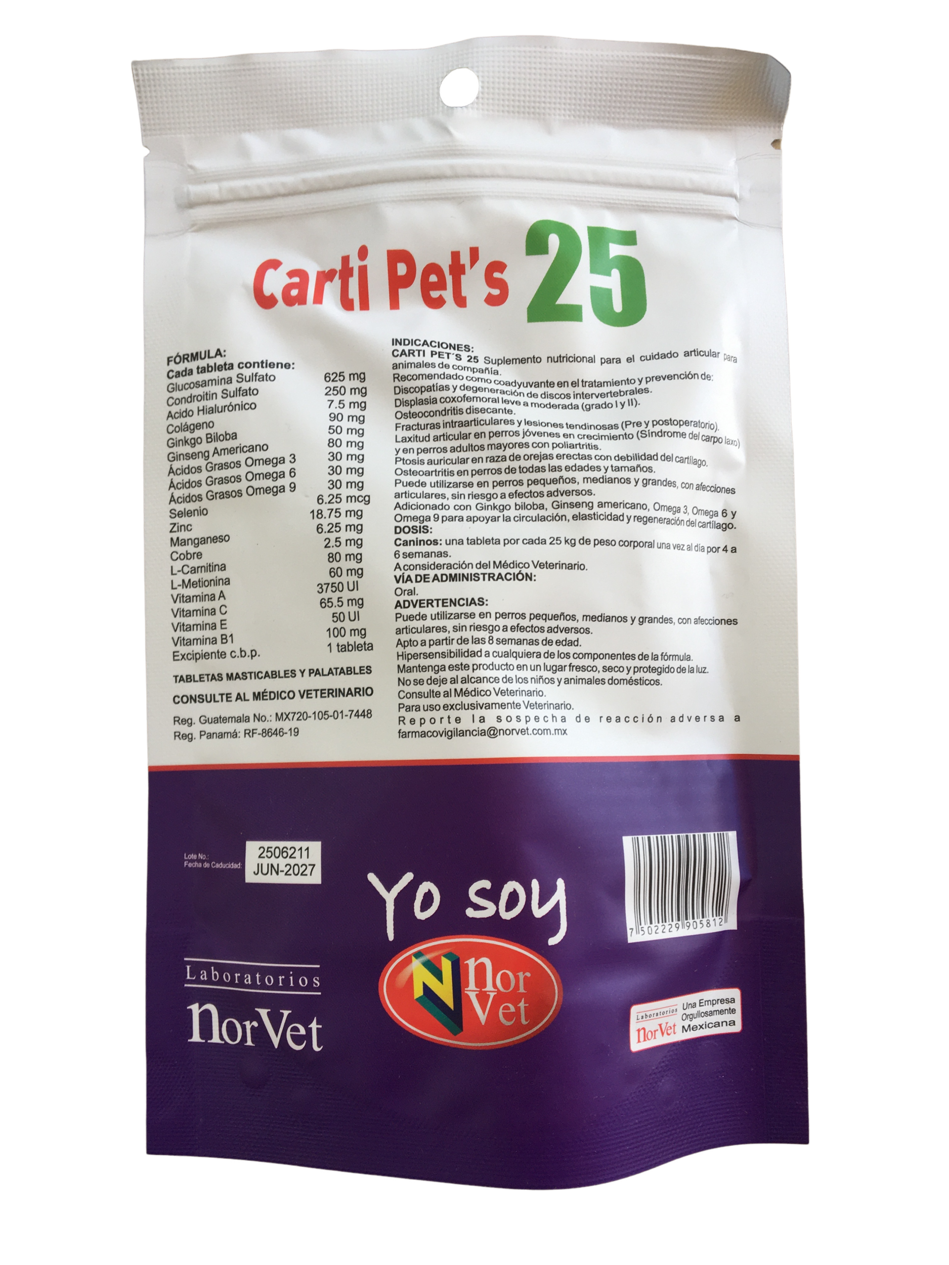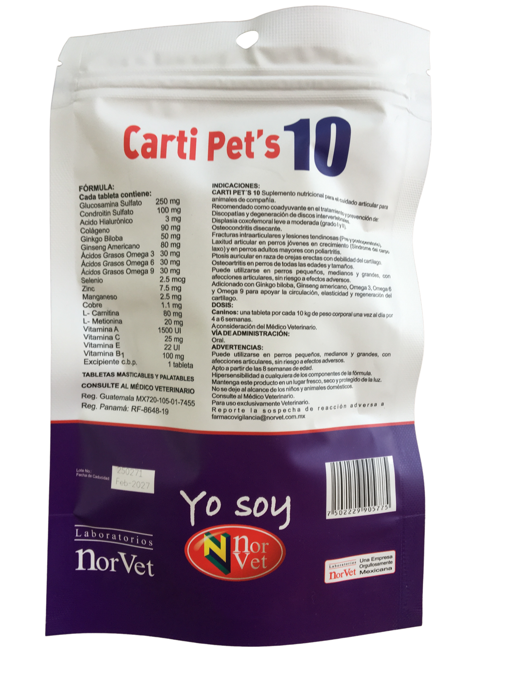 Ruiland-Vetri-Artroflex, contiene todos estos elementos, es muy fácil de utilizar, al ser Tabletas Masticables muy palatables, y al no tener efectos secundarios indeseables.